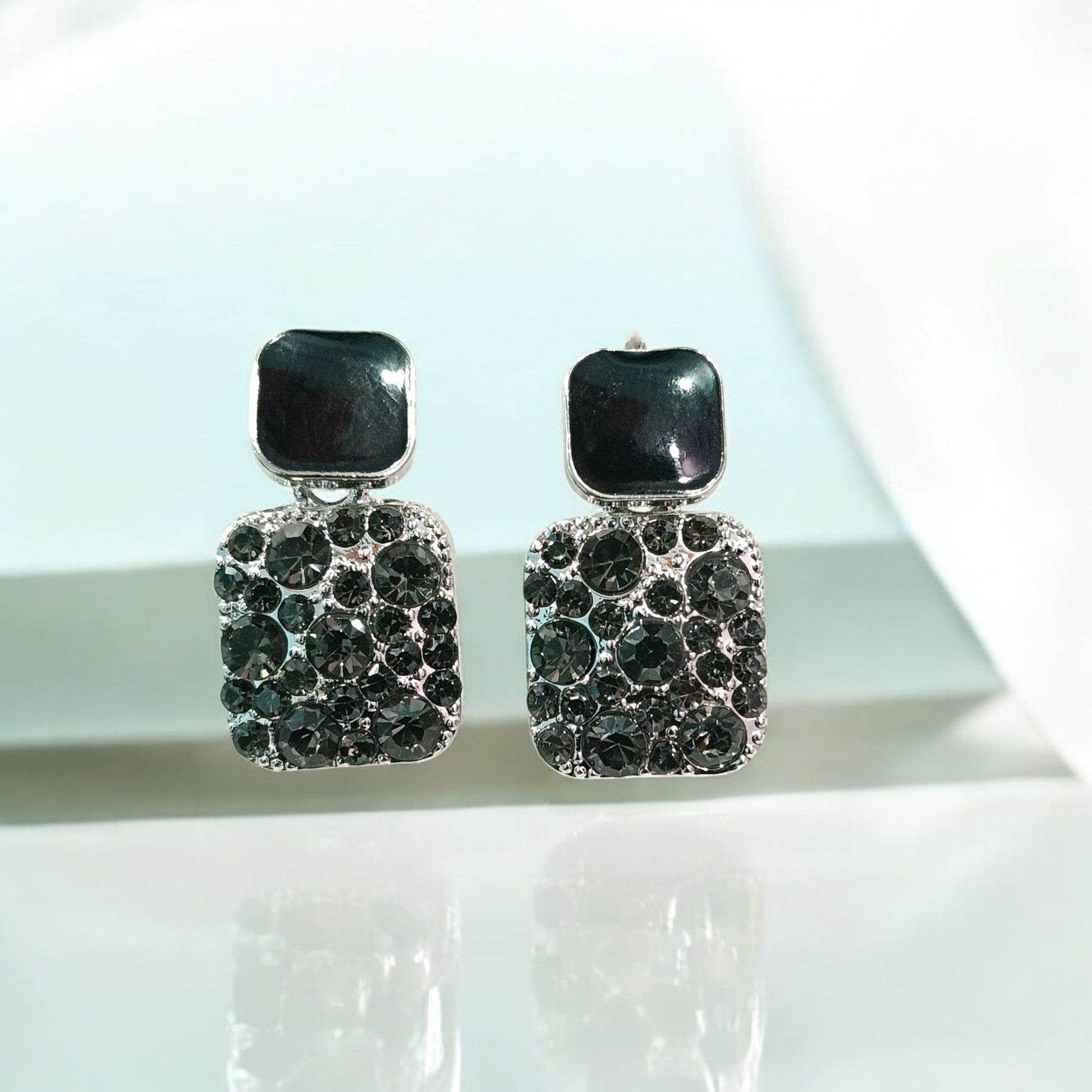 Jwelric Black Square Stud Earrings with Crystal Accents